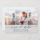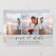Plocka det bästa bilderna från förlovningen eller bilderna av de två för den här perfekten sparar datumet. Ord sparar datumet och skriver till ge för hand ett personligt märke till kortet. Framsidan har 3 bilder och baksidan har en stor bild med ett vitt filter överst.