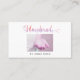 Framsidan av det här eleganten har ett modernt kort med en konstnärlig feminininisk chic-skript med typsnitt som stavar ut ord HANDMADE. färger är pastellfärgade gradienter av komberns rosa lila och violett.
