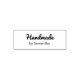Överst står det "Handmade" i ett kursivt skript. Den andra raden har platshållartext för ditt namn, ditt företag namn eller ett personlig-meddelande. All text kan redigeras eller tas bort.