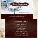 Ett modernt affärskort för design som innehåller en bild av handgjorda smycken på en mörk av brunt ytläderbakgrund. Den främre etiketten finns på ett separat lagrar och kan dras eller tas bort om du inte behöver den. Och du kan också ersätta juvelernas bild med din egen bild. Perfekt för smycken- eller smyckesaffärer eller för flockar.