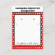 Handmade Jewelry by Name typography in black against white background. Red background with black and white polka dots. Crafted with love written in black script (keep or insert short tagline, or delete to leave area blank). Two Small Circles against white and black framed background. NOTE: Circles and Lines on each side are not pre-cut, you will need to use a Small hole punch, and scissors or box knife cutter type to make clean cut holes and Small slits, to then place your Earring Studs and Necklace in. Backside has small red heart. Insert telephone number, email address, website, social media handle, as needed. Insert Your Business QR Code for customers to Shop 24/7, or delete as needed. Original Design by TamiraZDesigns.