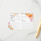 Samla älskade recept i stil med detta vackra, handmålade bohemiska blomstermotiv i akrylfärg på bröllopsduschens receptkort. Med en mjuk, pastellblommig design i nyanser av orange, lila och blå är detta kort perfekt för att samla in familjens favoriter och nya kulinariska idéer från gästerna. Den eleganta layouten innehåller utrymmen för ingredienser, instruktioner och andra viktiga detaljer, vilket gör det både funktionellt och visuellt tilltalande. Perfekt för en bröllopsdusch på våren eller sommaren, detta receptkort tillför en personlig och meningsfull touch till evenemanget.