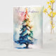 Handmålad Ljus Färgglad Vattenfärg Julgran Kort