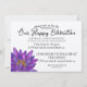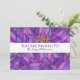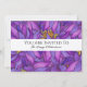 Framsida: Bakgrunden är helt fylld med livfulla handmålade lila blommor med gyllene gula centra. Ett vitt horisontellt band löper tvärs över mitten och skapar en ren brytning i det blomsterrika mönstret.