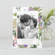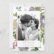 Notera bröllop med romantisk charm med hjälp av det här Spara datumkortet, som är vackert designat med en mjuk blommigt ram och en centrerad fotolayout. De ömtåliga handmålade blommorna i lila, grönt och toner ger en grönfärsk känsla, skapar den här perfekten för vår eller sommar-bröllop, blommigt-temat firande eller romantiska utomhusplatser. Anpassa enkelt med ditt favoritfoto, namn, datum och plats för ett meningsfullt, enkelt meddelande.