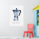Handmålad vattenfärgad Vintage Moka Coffee Maker Poster