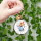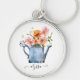 Handmålad vattenfärgsBlommigt Rund Silverfärgad Nyckelring