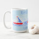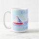 Handmålade havsfärgade segelbåtar i stället för se kaffemugg