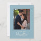 Fira kärlek och elegans med vår exquisite Hand-Drawn Blue Bukett med rosor Photo Inbjudningskort för möhippan. Den här inbjudan är gjord i en vintage som är uppbyggd av stil, och den skryter med ett häpnadsväckande blått bukett med rosor. Den är oerhört handdragen för en tidlös beställning. Det ljusblå handskrivna skriptet kontrasterar vackert mot en gräddbakgrund och tillför en aning sofistikering till din händelse. Inbjudan går tillbaka till visning av förlovningens foto med frasen "Framtida fru" med utrymme för ditt nya efternamn nedan i ett krämskript. Perfekt för brider som söker ett klassiskt och romantiskt tema för sin möhippa. Höj firande och ange tonen för en oförglömlig sammankomst med den här fantastiska inbjudan.