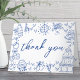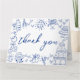Europeiskt inspirerad blå och vit handritad fantasifull bröllopsfallet tackkort.