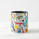 En roligt som leker mönster av manusförfattare och dockdesign för ett mugg.