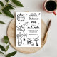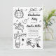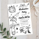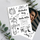 Fira den stora bedriften med denna roliga och fantasifulla examensinbjudan! Med handritade illustrationer och lekfulla klotterdoodles är denna inbjudan perfekt för att markera din högskole-, universitets- eller studentexamen. Den funky, glada designen säger allt: "Skål för examen!" Få din examensfest att sticka ut med denna unika, roliga och kreativa inbjudan som vänner och familj kommer att älska. Perfekt för alla som letar efter en udda, handritad examensfirande.