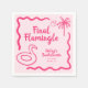 Vi presenterar vår "Final Flamingle" servett-design med en livfull het rosa handritad sicksack-ram som ger en lekfull touch till den mjuka rosa bakgrunden. Prydd med fantasifulla handritade ikoner av en flamingo-poolleksak, en uppfriskande kokosdryck och ett palmerträd, sätter denna design scenen för en tropisk och rolig helg.