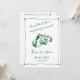 Den här fantasifulla, handritade gröna "Save the Date"-inbjudan kombinerar en lekfull konstnärlig look med modern bekvämlighet. Med ömtåliga handritade element, en fräsch grön färgpalett, ditt personliga foto och en inbyggd QR-kod för enkel RSVP eller åtkomst till bröllopswebbplatsen – det är den perfekta blandningen av charmigt och praktiskt.