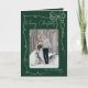 Denna hopfällbara julkort har ett vertikalt foto på framsidan, inramat av en virvlande bandliknande doodle-kant. En handritad kokett slinga sitter i det övre högra hörnet, med "God Jul" i handskriven stil i det övre vänstra hörnet. Det nedre högra hörnet har utrymme för din familjs efternamn eller individuella namn och året. Bakgrunden är djupt smaragdgrön med salvia-grön doodle-konst och teckensnitt för ett festligt utseende.