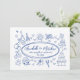 Handritad Handskriven Blå Whimsical Bröllop Inbjudningar