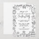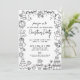 Bjud in gäster till din julfest med denna roliga, fantasifulla och festliga julinbjudan. Designen har handritade doodle-illustrationer längs kanterna, inklusive Tomte, snömannen, julstrumpor, grönska, julkulor och andra klassiska julikoner, blandat med festliga drinkar och till och med ett champagne-torn för en livlig feststämning. Mitten hålls enkelt med ett handskrivet manus tillsammans med rena typsnitt, vilket ger det utseendet av en handskriven lapp.