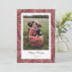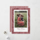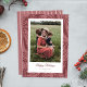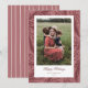 En handritad bakgrund av julmistelblad och bär i tonala färger sitter bakom ett enda foto. Uppdatera det vackra typsnittet med din egen julhälsning. Ett kompletterande handritat vertikalt randmönster finns på baksidan.