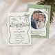 Fira din speciella dag med denna charmiga handritade vinjett vinterbröllopsinbjudan, med en fantastisk ljusgrön slinga, delikat grönska, festliga vinterdekorationer och en praktisk QR-kod för att dela dina bröllopsdetaljer digitalt. Denna unika inbjudan kombinerar lekfull konstnärlighet med eleganta säsongselement, perfekt för par som planerar ett mysigt, rustikt eller skogsinspirerat vinterbröllop.