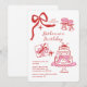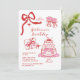 Handritad röd rosa klotter födelsedagsfest inbjudningar