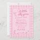 Om du söker en elegant unik och lätt anpassningsbar inbjudan till bebisflicka shower är detta perfekt för dig. Som du ser har den en retro handskriven skrift av en liten dum gås som nästan är där i levande rosa. Och handritad gås på. Och rosa kantram och rosa rutiga rutor. Allt på blekrosa bakgrund. Mycket lätt att anpassa och använda. Så ta tag i det och gör dina inbjudningar mycket engagerande.