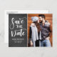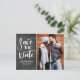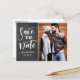 Anpassningsbar spara-datum-postkort med handritad kalligrafi och falsk kritstavla-bakgrund. Anpassa detta platta kort genom att lägga till ditt eget foto och detaljer.