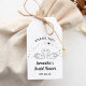 Lägg till en touch av tidlös elegans till din bröllopsfest med våra Elegant Swan Celestial Favor Tags. Med vackert handritade svanar som formar en hjärtform, som symboliserar kärlek och partnerskap, är dessa etiketter perfekta för den coola, bekymmersfria bruden. De känsliga stjärnorna och subtila gnistrande detaljerna ger en lekfull, chic fransk känsla, perfekt för alla bröllopsfiranden. Skapade i en klassisk svart och vit handskriven stil, är dessa tacksamhetsetiketter perfekta för att tacka dina gäster med stil och sofistikation. Gör din speciella dag oförglömlig med denna förtrollande design.