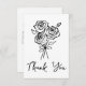 Skicka dina hjärtliga tack med detta minimalistiska platta bröllopsfest-tackkort med en handritad svart rosbukett i en delikat linjestil på vit bakgrund. Den eleganta designen inkluderar orden ”Tack” i ett modernt handskrivet typsnitt under den blomstermålningen, vilket ger en tidlös och sofistikerad look. Baksidan av kortet är helt anpassningsbart med ditt meddelande, vilket gör det perfekt för att uttrycka tacksamhet för bröllopsfestgåvor, kärlek och stöd. Idealiskt för moderna brudar är detta svart-vita tackkort både stilrent och meningsfullt.