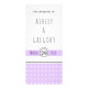 BUDGET Handritad typografi lavendel lila mönster bröllopsprogram. Programmet nederkant visar ett vitt och lavendel geometriskt mönster, kompletterat med en banderoll som framhäver bröllopsdatumet. Paret namn presenteras vackert i en fantasifull handritad typografi, vilket ger en unik och personlig känsla till programmets övergripande utseende.