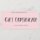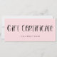 Detta stilrena, moderna presentkort har en blek rosa bakgrund med lekfull svart handritad typografi.
