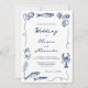 Handritad Whimsical Kustnära Marinblå Bröllop Inbjudningar