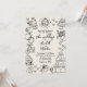 Vintageinspirerade handritade excentriska skisser Whimsical bröllopsinbjudan. Perfekt för par som söker en kreativ, lättsam touch med en nostalgisk twist, har denna lekfulla design en off-vit eller åldrad bakgrund, vilket ger den en tidlös vintagekänsla. Det dynamiska arrangemanget av stora handritade illustrationer flödar över kanterna och skapar en konstnärlig och modern look med en antydan till gammaldags charm.
