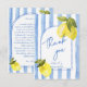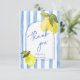 Handritade blåa ränder citroner bröllopsdusch tack kort