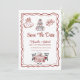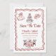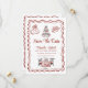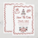 denna fantasifulla italienska bröllopsinbjudan med handritade klotter och kråkfötter i rött. En vågig linje ramar in den romantiska italienska inspirerade inbjudan. Ett perfekt tema för paret som beger sig av på en romantisk italiensk smekmånad efter bröllopet. Denna spara datum-design finns endast tillgänglig i tryckt format.
