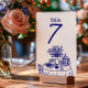 Romantiska blå och krämfärgade skrivbordsnummerkort i doodle-stil är ett stilrent och lekfullt sätt att guida gäster till sina platser på bröllop, mottagningar eller speciella middagar. Med handritad klotterstil i blå färg över en mjuk krämfärgad bakgrund visar denna trendiga design en charmig doodle av ett middagsbord komplett med vin, blomsterarrangemang och dukning - perfekt för firanden som kretsar kring mat, kärlek och gemenskap. Det djärva blåa numret är lätt att läsa på avstånd, vilket gör det funktionellt såväl som dekorativt. Den skissliknande doodlekonsten tillför personlighet och visuell attraktionskraft och passar perfekt med moderna illustrerade bröllopsteman. Ideala för par som planerar ett fantasifullt eller avslappnat-chict evenemang, dessa skrivbordsnummerkort koordinerar vackert med matchande doodle-stil inbjudningar, menyer och skyltar. En bra passform för matfokuser