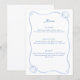 En raffinerad tolkning av en kustklassiker, denna snigelskal-bröllopsduschinbjudan blandar mjuk blå linje konst med en elegant, redaktionell layout. De känsliga skalillustrationerna och luftiga, handritade kanterna frammanar en Nantucket-inspirerad estetik - subtil, tidlös och otroligt chic.