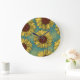 Handritade solblommor Mint Blue Stor Klocka