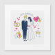 Fira magin av en ny union med denna anpassade design "Wedding Day Doodles". Med en charmig, handskisserad illustration av ett lyckligt par i deras bröllopskläder, omges detta konstverk av en lekfull samling fantasifulla ikoner - från en flerskiktig tårta och glänsande champagneglas till svävande hjärtan och romantiska kärleksbrev. Den minimalistiska vita karaktärsstilen, accentuerad med livfulla nyanser av rött och gult, ger en modern och unik look som perfekt kompletterar indie-, boho- eller udda-tema bröllopsfiranden.