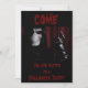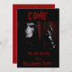 En maskerad skalle som bärs med ett svart, skyddat landskap och en svart, glödande hand som bjuder in dig till kom. En maronridå används som bakgrund i det här fotot. En underbar inbjudan. Anpassa med egen information.