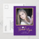 Ett enkelt tack från studenten som du visar med ett fyrkantigt foto accentuerat med faux guld glitter gräns på lila. Utformningen ger handskriven stil-text från guld. Baksidan erbjuder anpassningsbar för ditt eget tack.