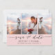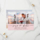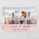Plocka det bästa bilderna från förlovningen eller bilderna av de två för den här perfekten sparar datumet. Ord sparar datumet och skriver till ge för hand ett personligt märke till kortet. Framsidan har 3 bilder och baksidan har en stor bild med ett vitt filter överst.