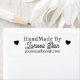 Ett vackert och anpassningsbar objekt med ord "HandMade by", för att anpassa dina handgjorda produkter med kärlek... ditt eget namn eller varumärke i ett elegant-skript font stil och en rad för att lägga till e-post eller annan ytterligare information om ditt företag.. två små kärlek-hjärtan på sidorna.