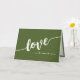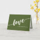 Trendigets hälsningskort för elegant med ett framträdande skript som stavar "KÄRLEK" på en rik bakgrund av färgaden. Enkelt personligt meddelande om kärlek. Finns i vikta och platta kortversioner. Perfekt för Alla hjärtans dag, Sötaste dagen, bröllop-årsdagen eller vilken dag som helst!