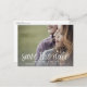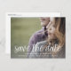 Ett modernt sätt att spara vykortets designad för att passa ditt favoritfoto för vågrät eller landskapsinriktad förlovning med fullt. "Spara datumet" visas nära grund på fotot i en vit handskriven stil-skriptskrift med texten namn, bröllop och bröllop under. Brevkort återförs om du vill visa ytterligare information om hur du sparar datuminformation, inklusive webbplatsen bröllop, med returadress och utrymme för mottagaradressering.