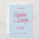 Den här moderna minimalistiska Bröllop spara datum-mallen för funky och retroaktiv användning är underbar för dig. Om du är tittar för en söt, elegant och lättanpassad Bröllop spara datum-mall. Ett mycket elegant vanligt skript med röd magenta bröllop spara datum. Med minsta blå handskrift sparar du datumet på en ren och ren himlar-bakgrund. och hand plockade ram . Ta tag i snyggten bröllop spara datum och gör inbjudan verkligt engagerat.