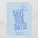 Den här moderna minimalistiska Bröllop spara datum-mallen för funky och retroaktiv användning är underbar för dig. Om du är tittar för en söt, elegant och lättanpassad Bröllop spara datum-mall. Ett mycket elegant blått skript bröllop spara datum. Med minimal blå handskriven text sparar du datumet på en ren, ren bakgrund av himlar. Och handdragna korsade hjärtan för att symbolisera roligten och kärlek för komen. Ta tag i snyggten bröllop spara datum och gör inbjudan verkligt engagerat.