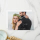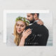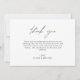 Tack, bröllop, ni kort som har ett foto på framsidan och baksidan. Tack-korten innehåller en modern, vit- och svart, kursiv skripttypografi som är elegant, enkel och modern till använda efter att du har minimalistisk enkel bröllopsdag firande.