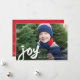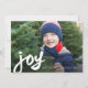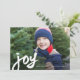 Denna djärva, konstnärliga, foto jul, högtidlig julkort annons innehåller stor handskriven rörlig glädje konstverk i vitt ovanpå ett fullblodigt kundfoto med enkel vit redigerbar textrad.