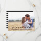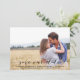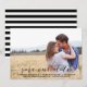 Stilfullt spara datumet foto tillkännagivande med rustika kalligrafi manus och ränder bak.