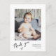 Vacker och modern tack-fotokort för att tacka vänner och familj för gåvor och stöd under baby shower-firandet. Designen har ett anpassningsbart foto i en vit ram och modern handskriven typografi.